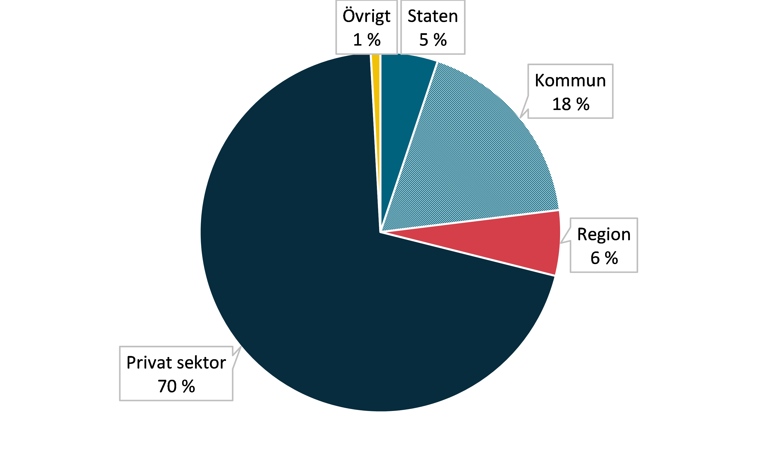 Andel anställda i staten och övriga sektorer 2023 (procent). Källa: SCB, Befolkningens arbetsmarknadsstatus (BAS).