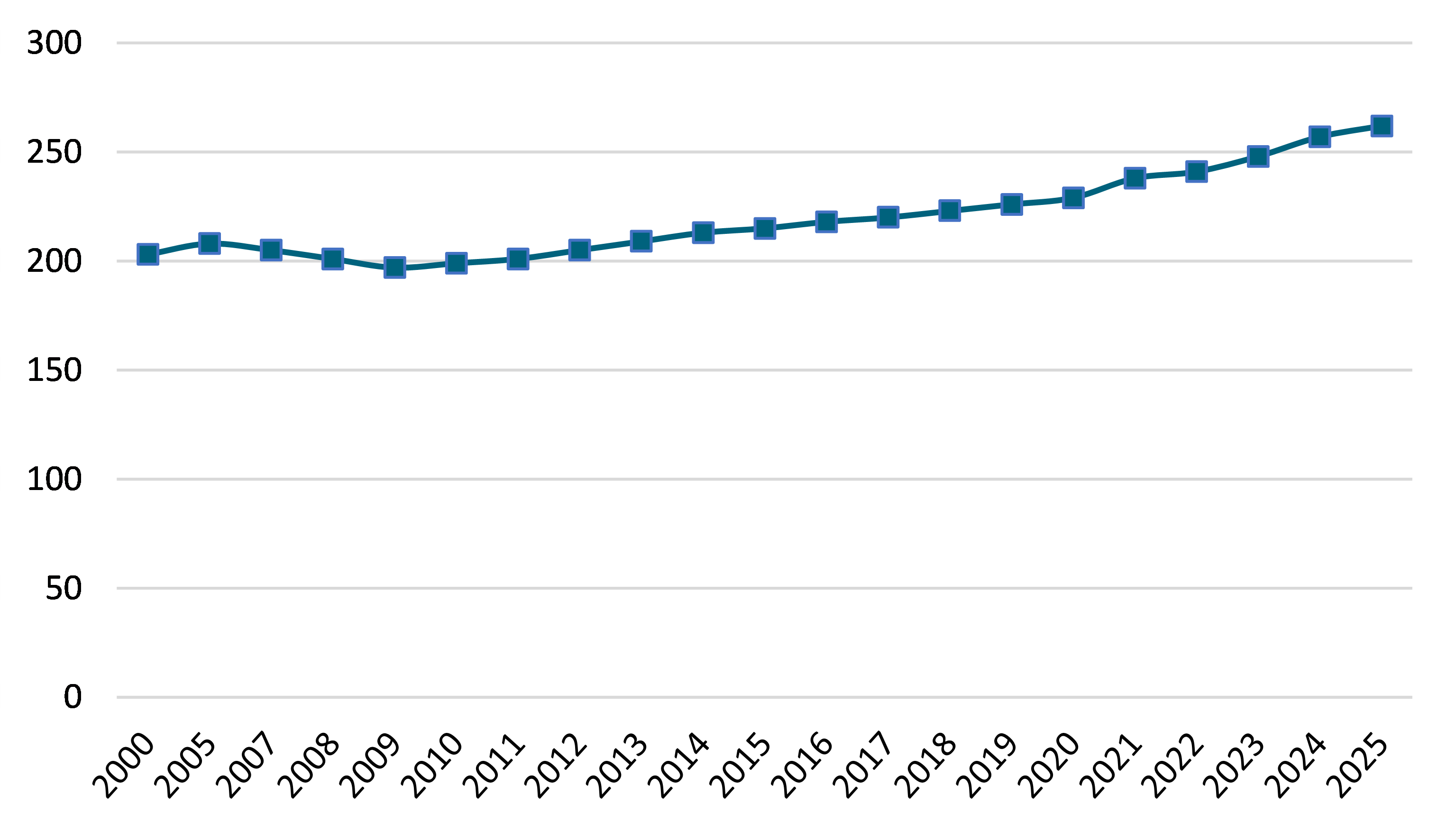 Antalet årsarbetskrafter i myndigheterna under regeringen har ökat med cirka 5 000 mellan 2024 och 2025. Under 2023 ökade antalet årsarbetskrafter i myndigheterna under regeringen med ungefär 9 000. Det är den största ökningen av antalet årsarbetskrafter sedan 2020. Årsarbetskrafterna har ökat varje år sedan 2009.